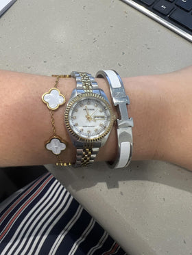 December 2025sajal nagwanshiVerified BuyerMy wife loved it! Phew!I absolutely love this bracelet! It looks very elegant and delicate on the wrist. The gold-tone finish combined with the clover-shaped details gives it a classy and timeless style. The bracelet is lightweight and comfortable to wear all day without irritation